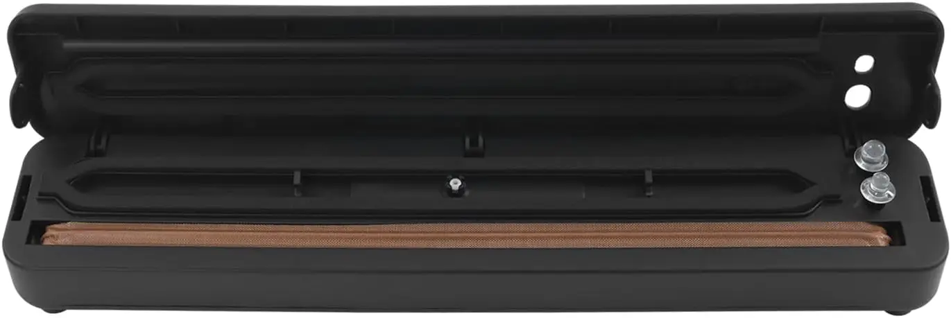 5. Drücken Sie die Knöpfe auf beiden Seiten, um das Vakuumiergerät zu öffnen. Um den Versiegelungseffekt zu gewährleisten, empfiehlt es sich, nach dem Versiegeln einige Sekunden zu warten, bevor Sie das Gerät herausnehmen.